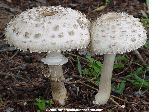 Macrolepiota rachodes has scales on its cap; unlike warts, scales are not distinct from the cap cuticle—rather, they are part of it.
