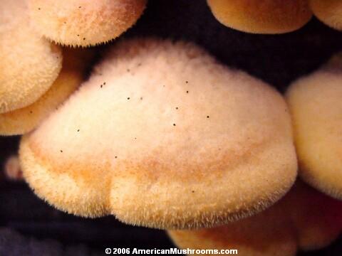 The cap of Phyllotopsis nidulans is distinctly velvety.