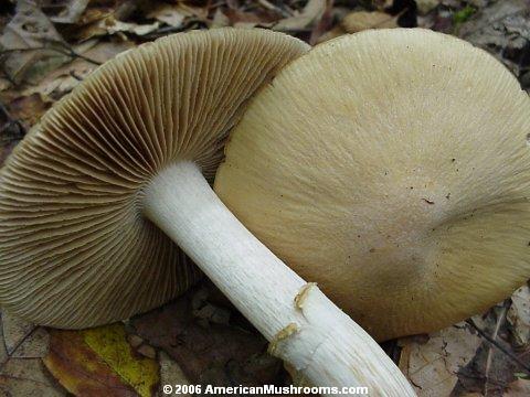 Amanita brunnescens has a bulbous stalk base that is always vertical clefted.