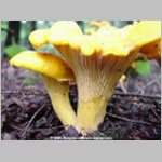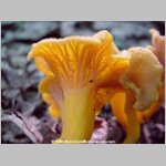 CHANTERELLES are often mistaken for true gilled mushrooms (agarics), but the "gills" of chanterelles are blunt, forked, and crossveined (not thin and flat-sided like true gills), and many species lack anything that resemble gills. These mushrooms are all fleshy, and most are popular edibles. A number of these mushrooms are trumpet- or vase-shaped, including the BLACK TRUMPET.