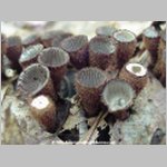 BIRD'S-NEST MUSHROOMS are tiny and are generally overlooked, although patches of hundreds or thousands of them are common in garden mulchbeds. Sphaerobolus is quite similar.